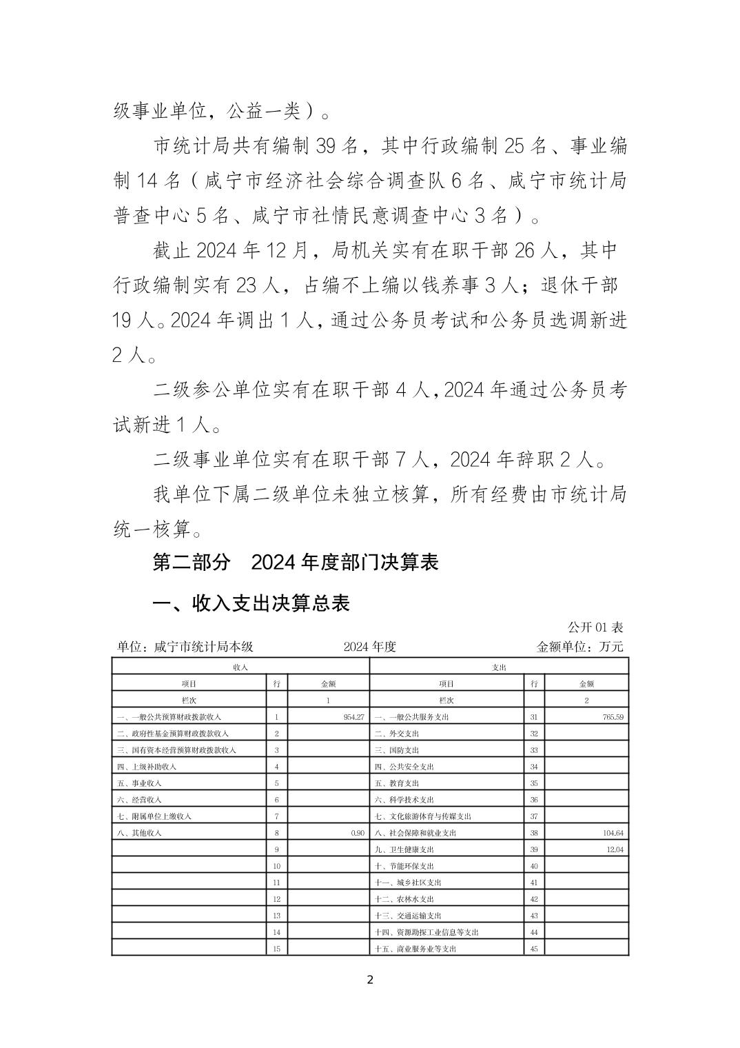 名       称: 咸宁市统计局本级2024年决算公开 发布日期: 2025年09月24日