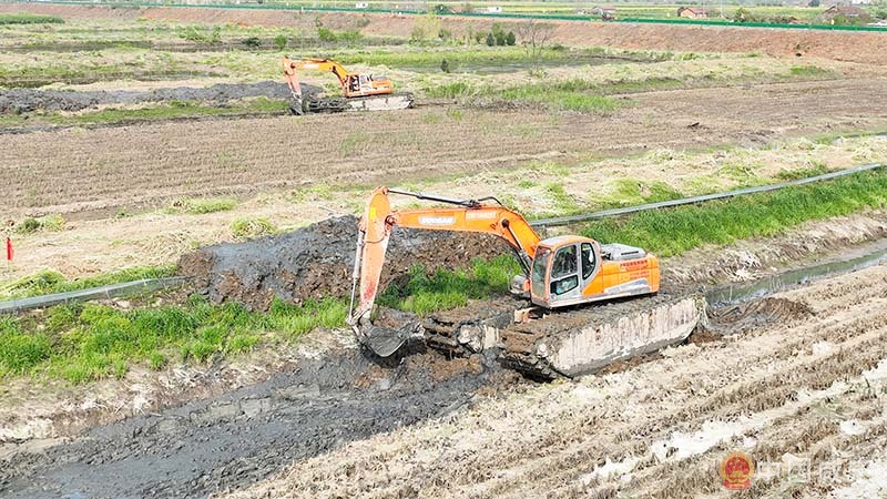 4月21日,在向阳湖奶牛良种场全域国土综合整治项目现场,几十台挖掘机、推土机、工程车正来回穿梭,对农田进行刨面、覆土、压实、回填,现场一派繁忙的施工景象。项目现场正在实施的是启动区水田垦造工程,涉及面积3667亩,可以产生新增水田面积约1800亩。
